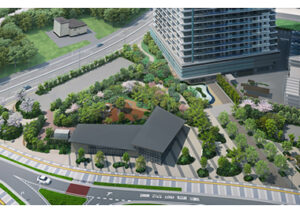 JR鴻池新田駅から徒歩11分に位置する総戸数201戸の集合住宅です。緑地は、生駒山や周辺の緑道との繋がりに配慮し、生駒山系で見られる樹種を中心に多様な樹種を導入し、鳥が好む花や実のなる木、チョウ類が吸蜜に訪れる花を植栽しています。また、住民の方を対象とした緑地を活用した自然観察会を計画しています。